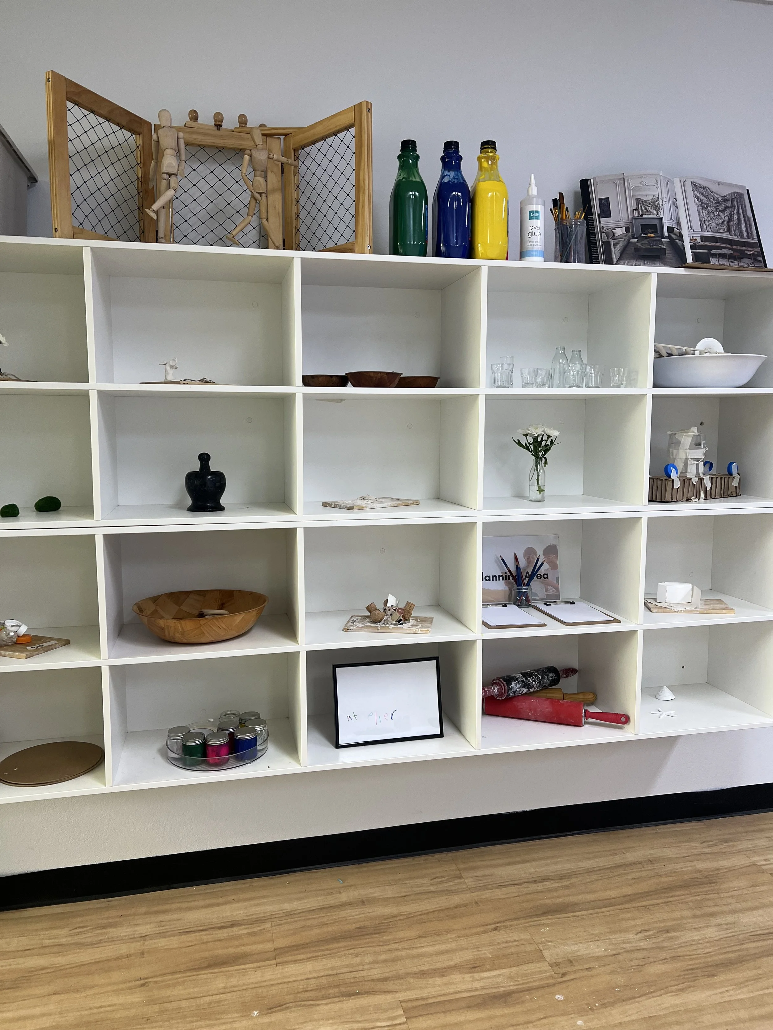 An Atelier is essentially a space for individuals to express themselves artistically through multiple mediums, using the language of art. It has multiple tools and materials to help build critical connections in the brain through the various art processes and creative thinking experiences.